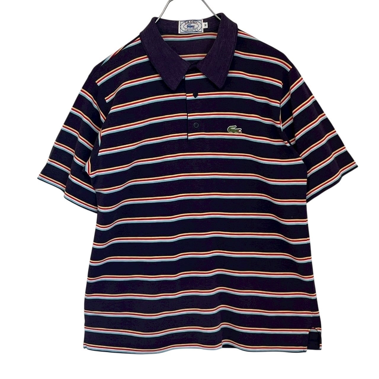 IZOD LACOSTE ラコステ ポロシャツ M ボーダー 刺繍ロゴ ワンポイントロゴ 80s 糸巻きタグ