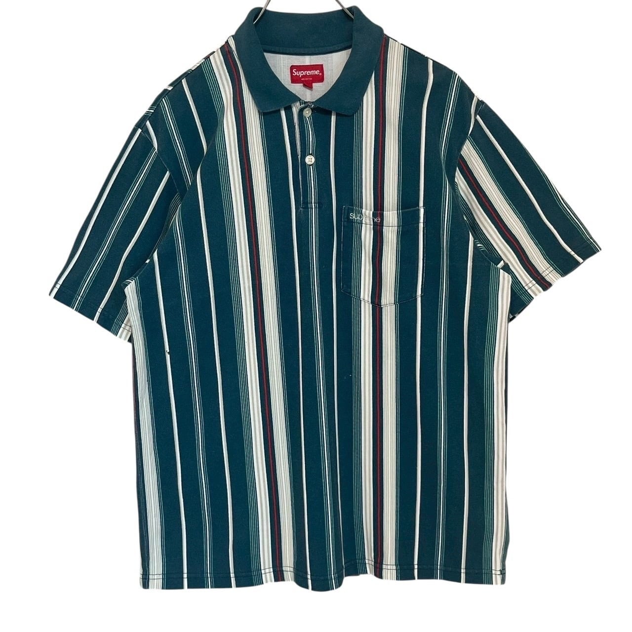 supreme シュプリーム ポロシャツ S ストライプ 刺繍ロゴ ワンポイントロゴ