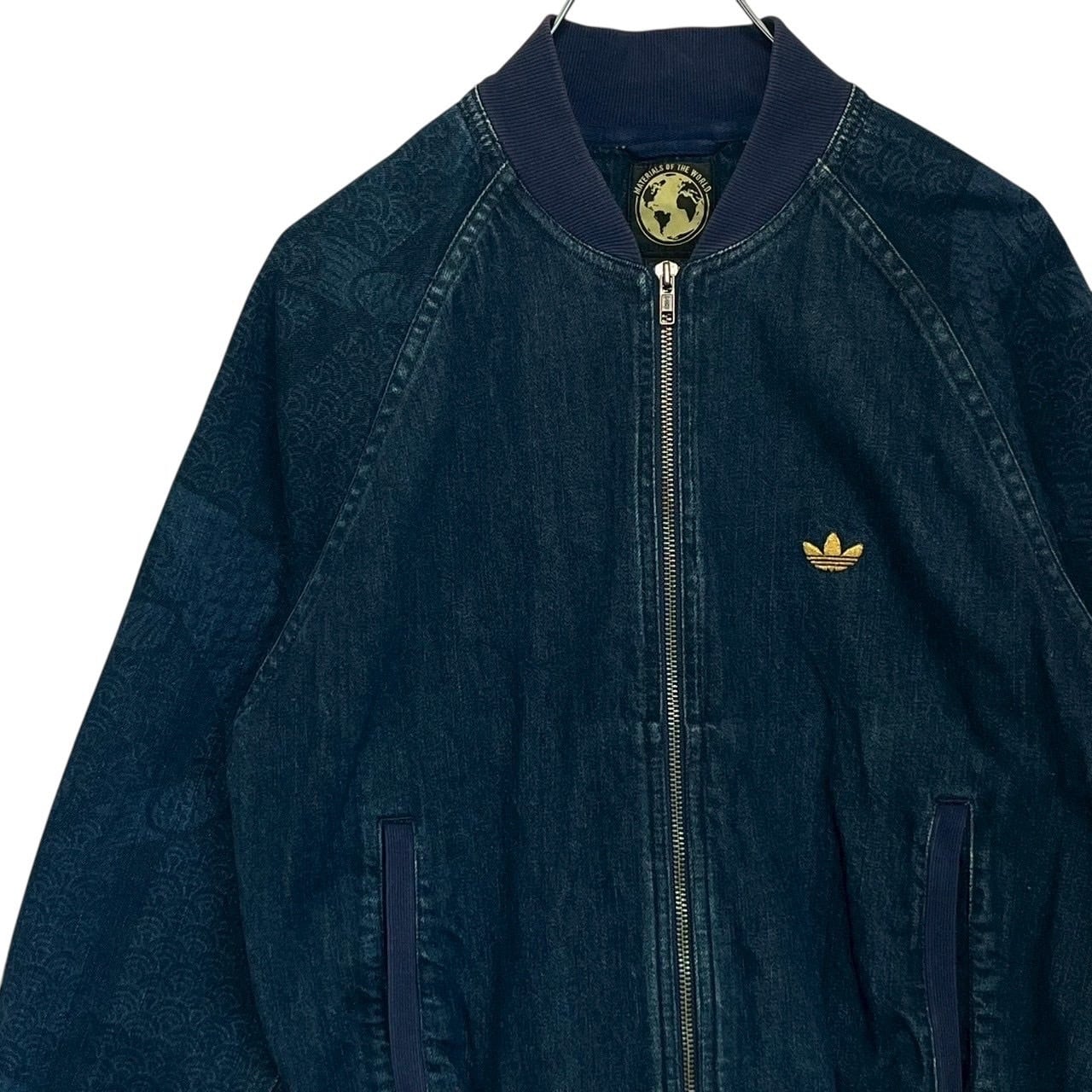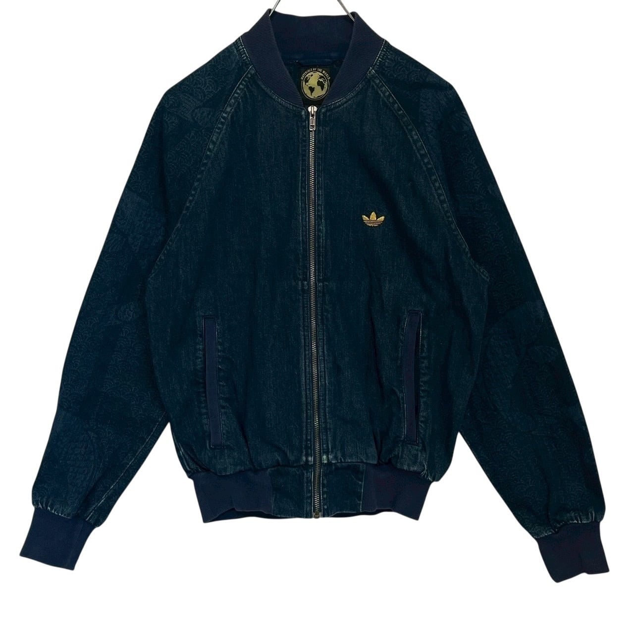 adidas アディダス デニムジャケット M 刺繍ロゴ ワンポイントロゴ 和柄