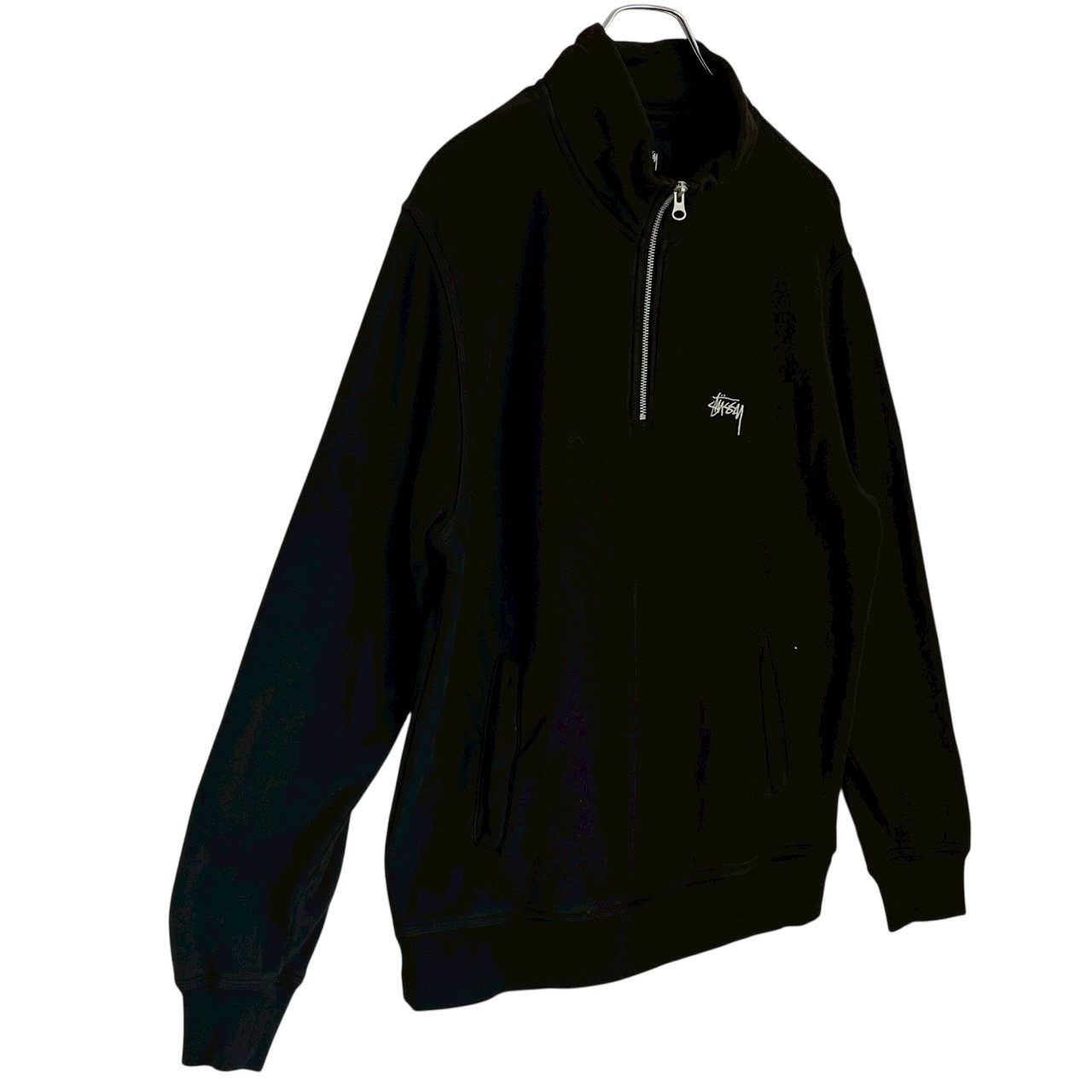 stussy ステューシー スウェット トレーナー M ハーフジップ 刺繍ロゴ ワンポイントロゴ