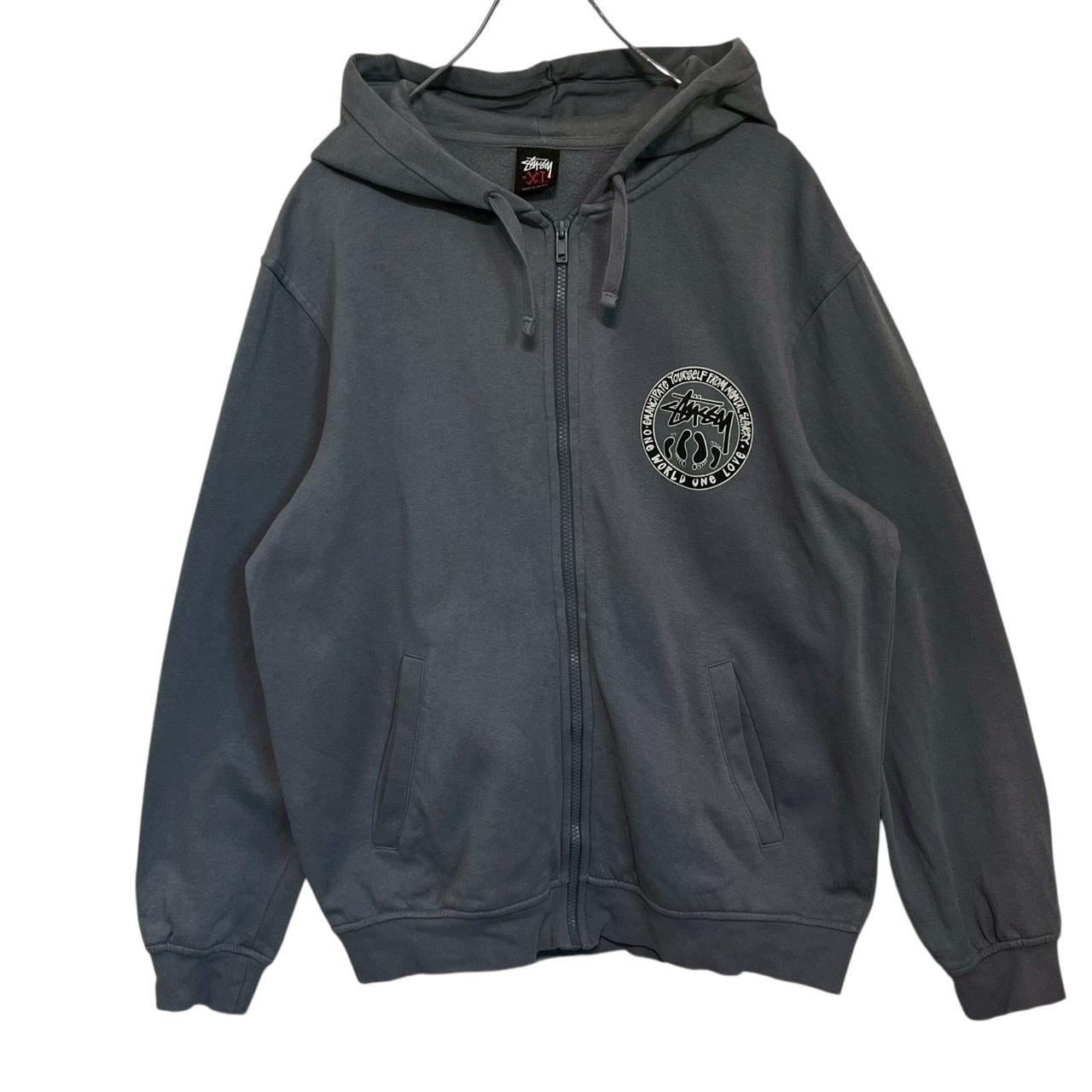 stussy ステューシー ジップパーカー XL バックロゴ プリントロゴ