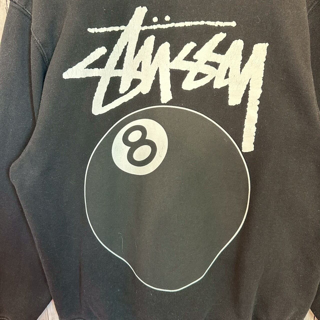stussy ステューシー パーカー M バックロゴ プリント 8ボール エイトボール