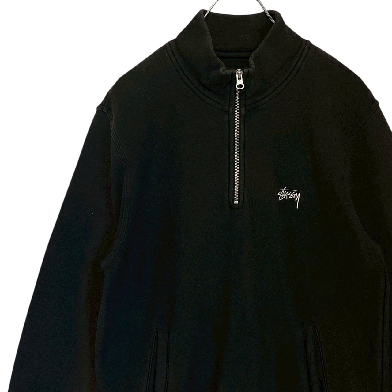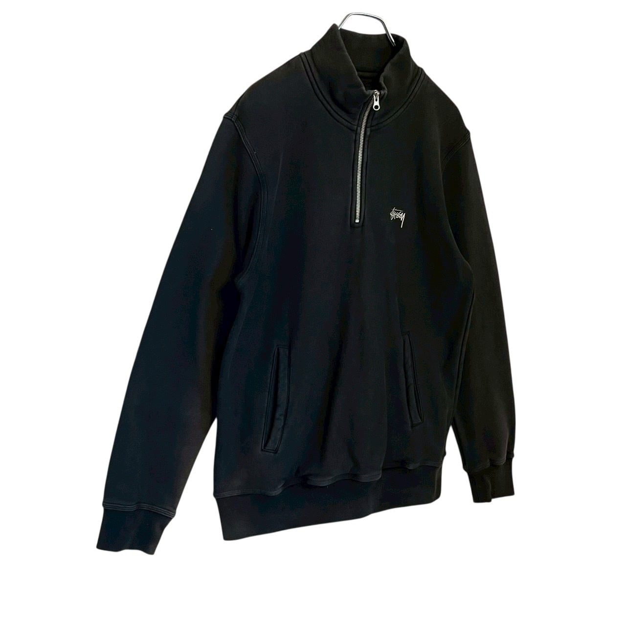 stussy ステューシー スウェット トレーナー M ハーフジップ 刺繍ロゴ ワンポイントロゴ