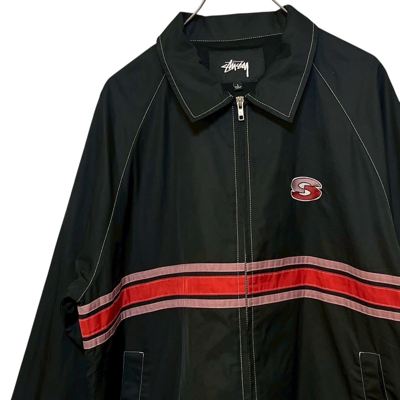 stussy ステューシー ナイロンジャケット L 刺繍ロゴ ワンポイントロゴ