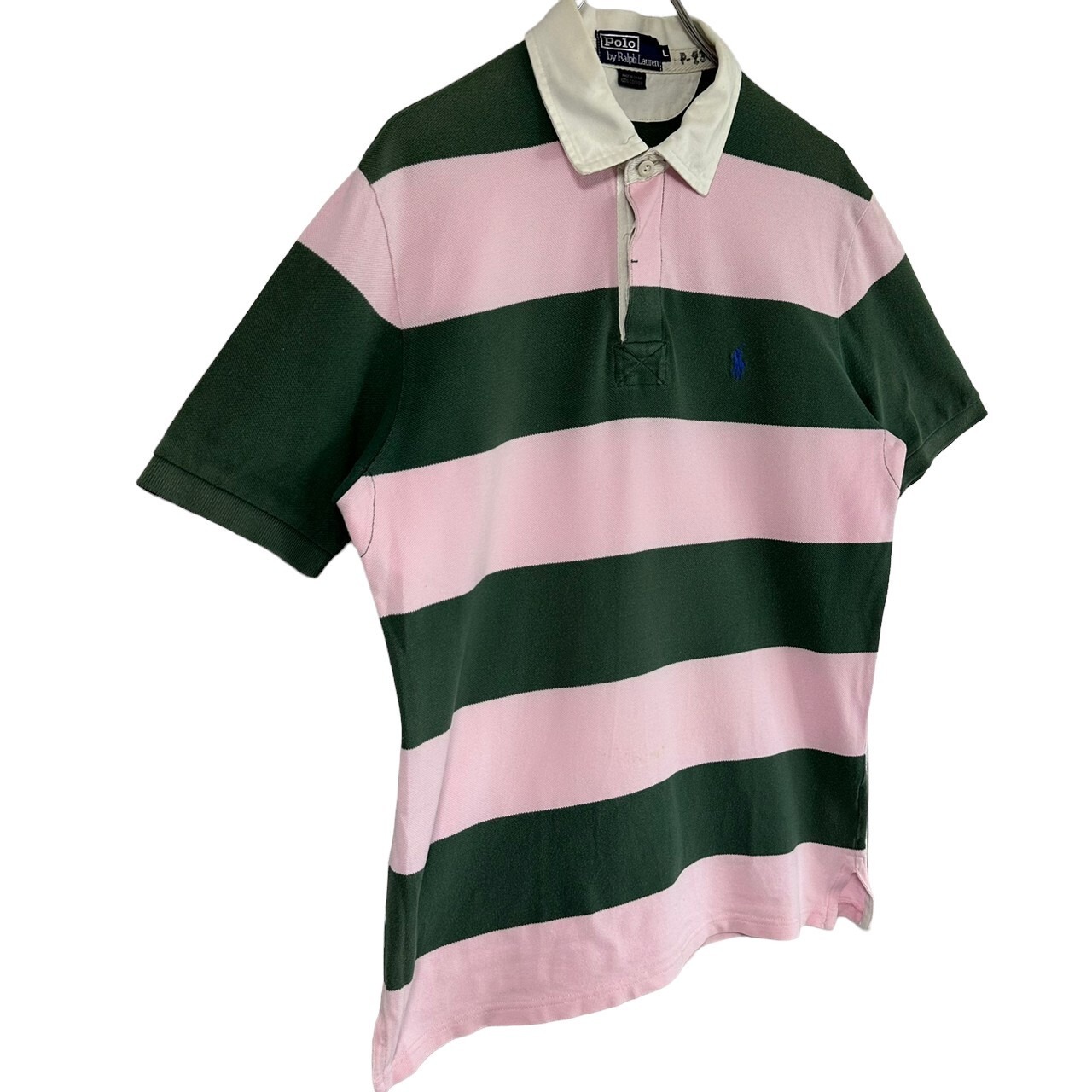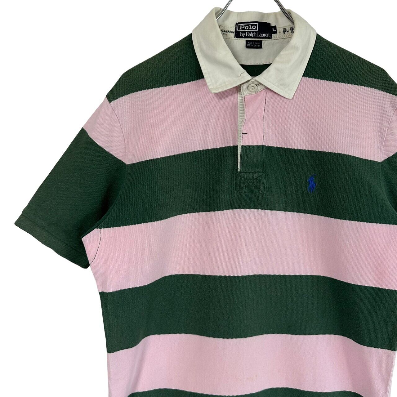 Ralph Lauren ラルフローレン ポロシャツ L 刺繍ロゴ ワンポイントロゴ ポニー ボーダー 90s