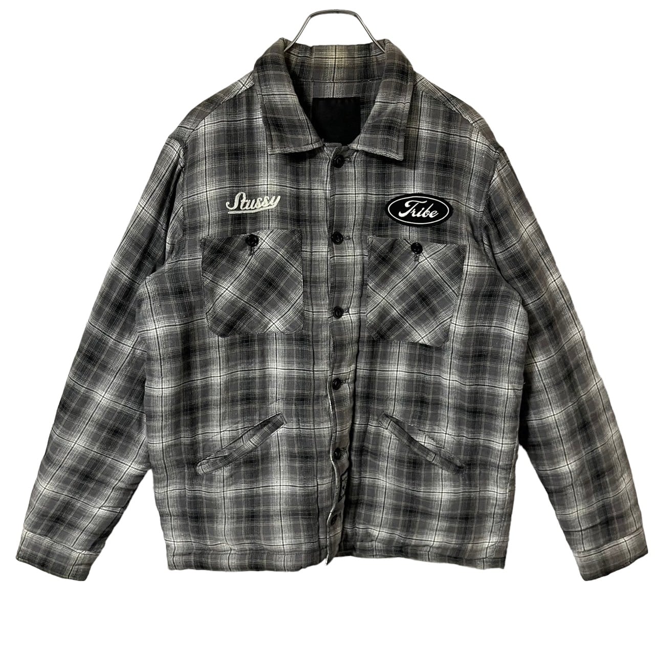 stussy ステューシー シャツブルゾン 刺繍ロゴ ワッペンロゴ 裏地キルティング オンブレ チェック