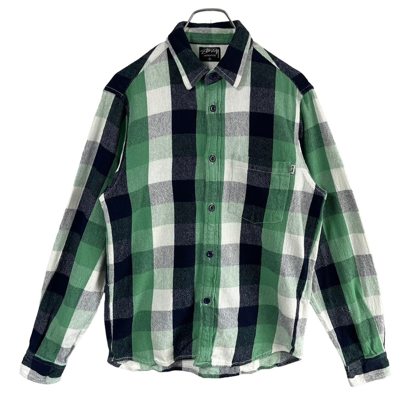 stussy ステューシー シャツ 長袖 チェック オンブレ 刺繍ロゴ ワンポイントロゴ