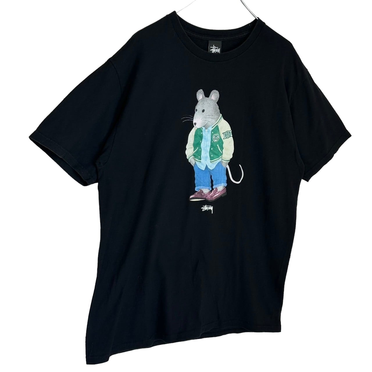 stussy ステューシー Tシャツ L プリントロゴ センターロゴ ネズミ マウス