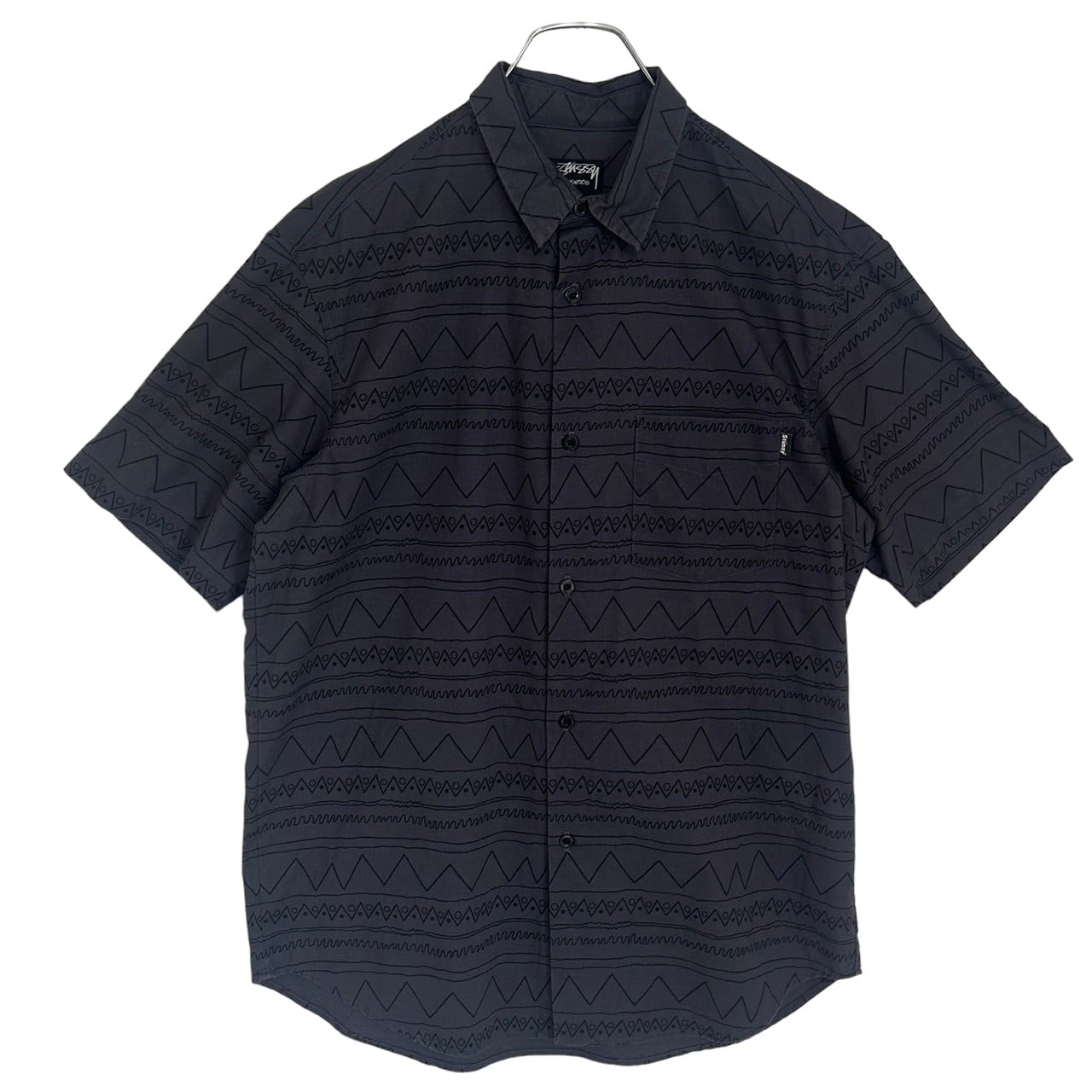 stussy ステューシー シャツ 総柄 幾何学 半袖 刺繍ロゴ ワンポイント