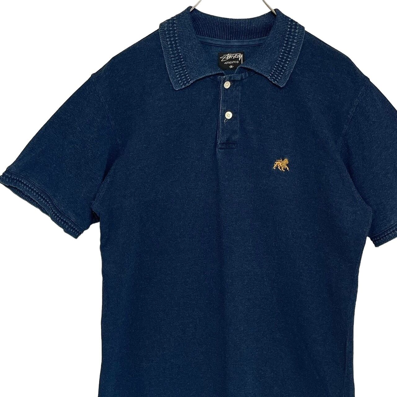 stussy ステューシー ポロシャツ 刺繍ロゴ ワンポイントロゴ ライオン デニム