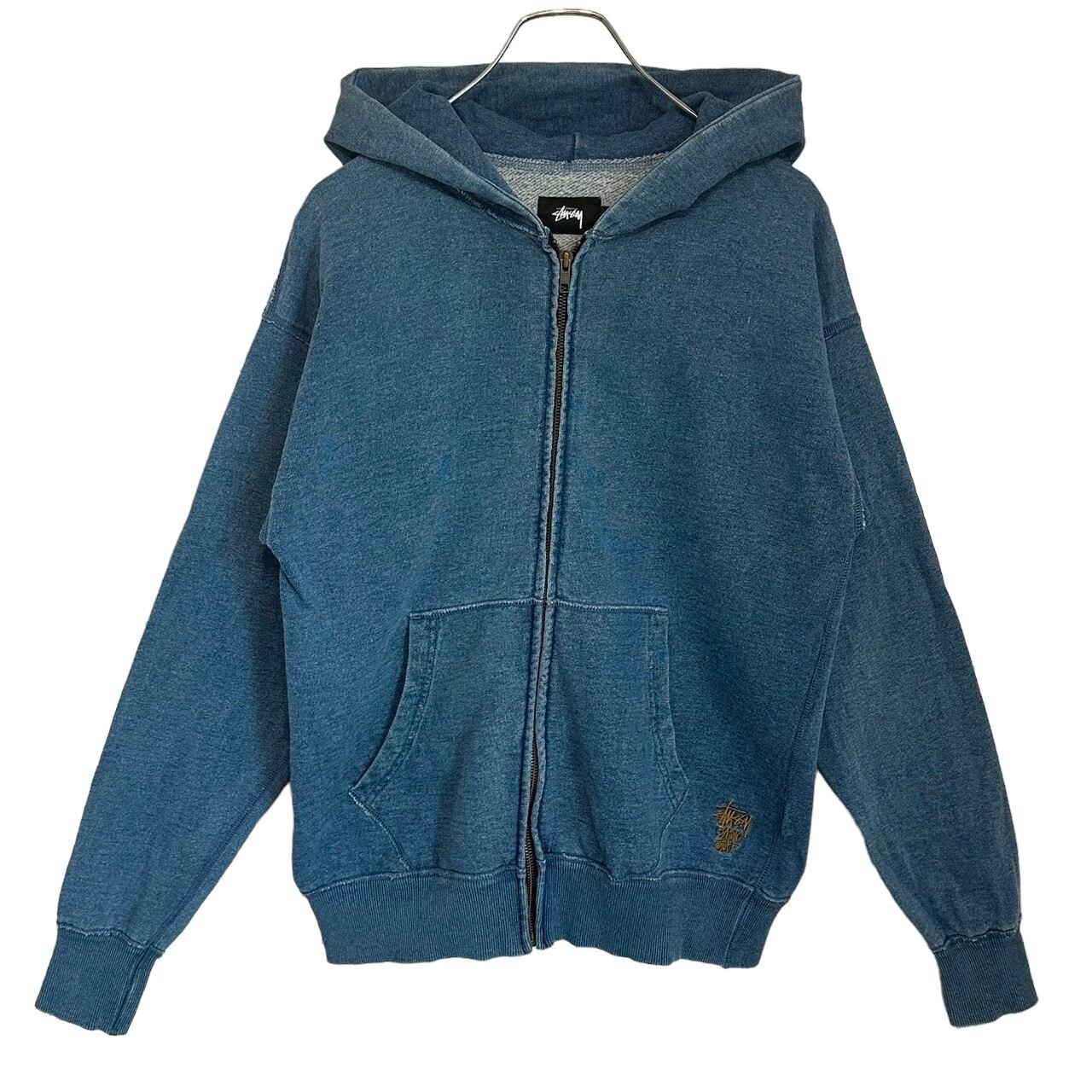 stussy ステューシー パーカー ジップアップパーカー 刺繍ロゴ ワンポイントロゴ デニム インディゴ