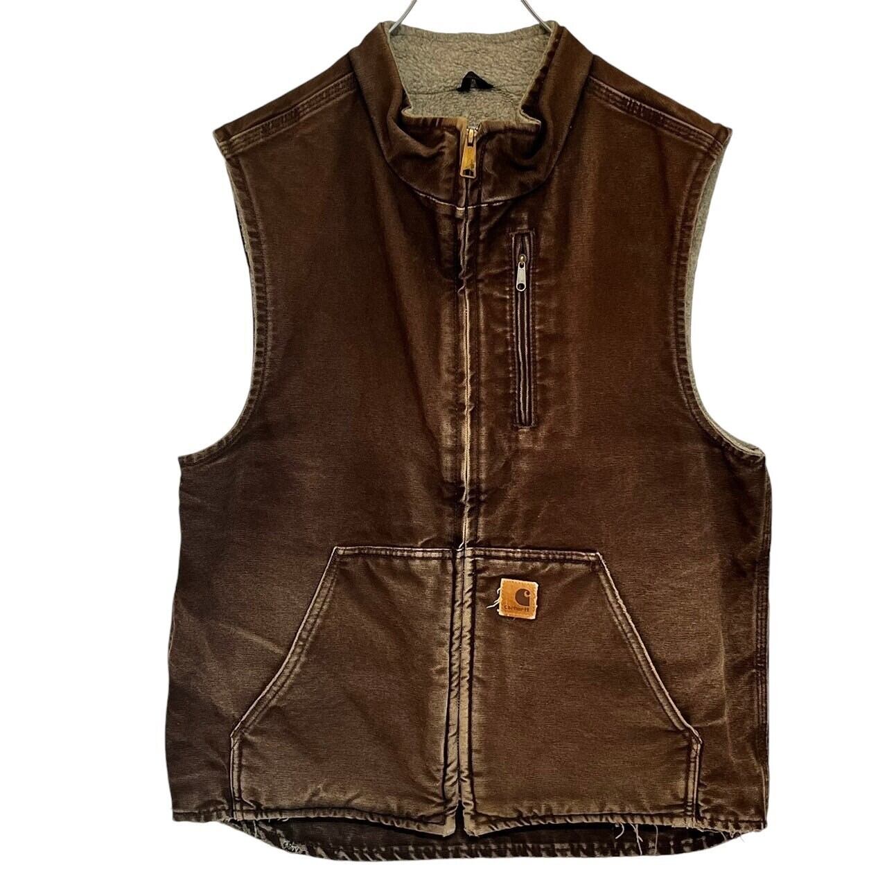 carhartt カーハート ダックベスト 刺繍ロゴ ワンポイントロゴ 裏地ボア 90s