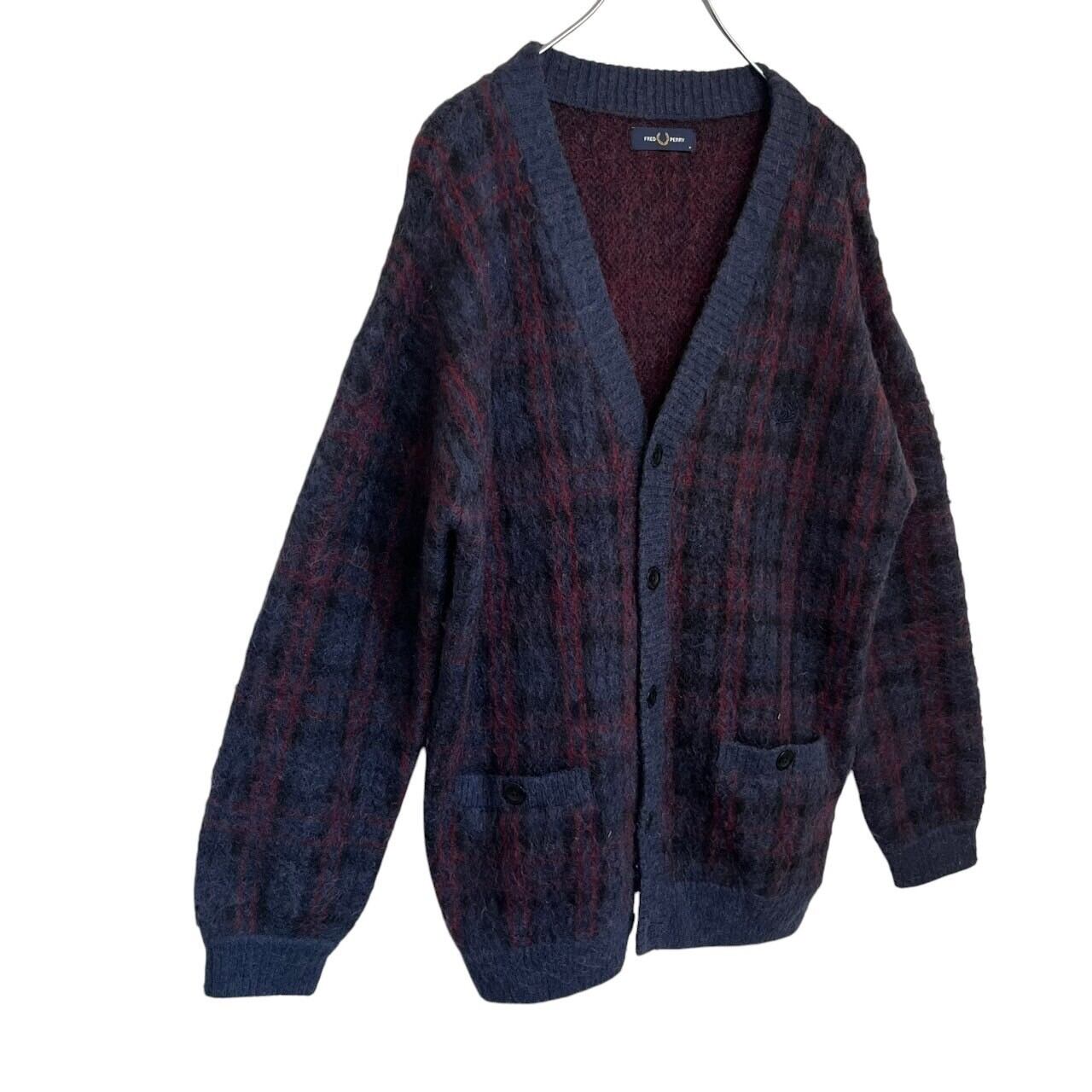 FRED PERRY フレッドペリー カーディガン チェック ウール 刺繍ロゴ ワンポイントロゴ