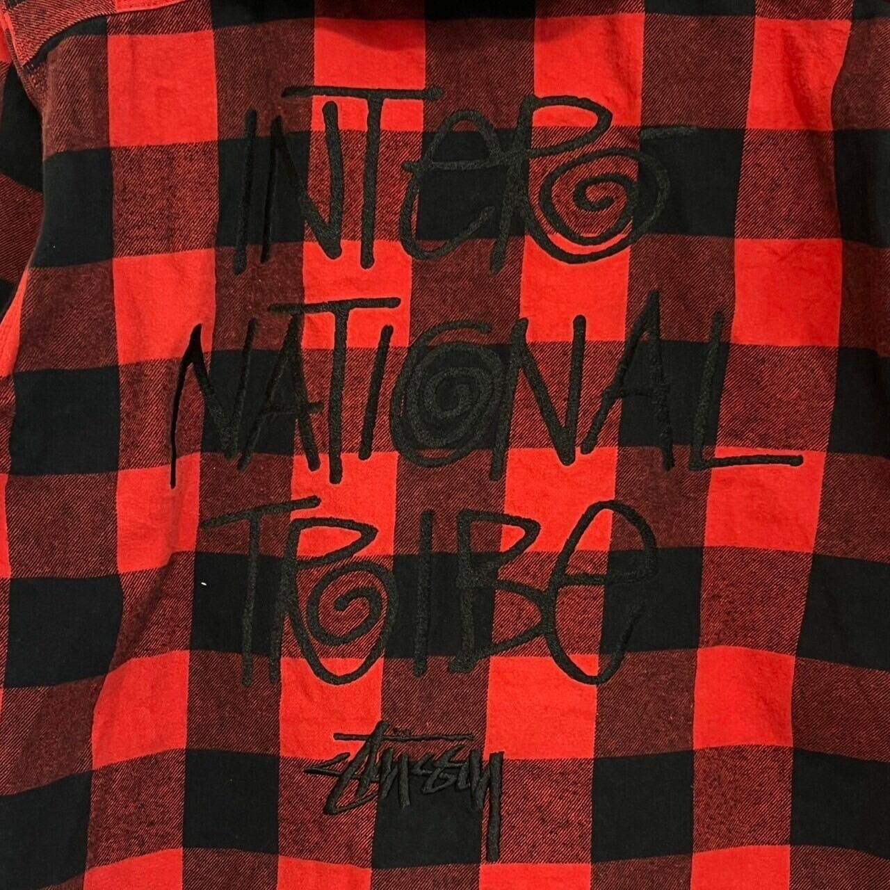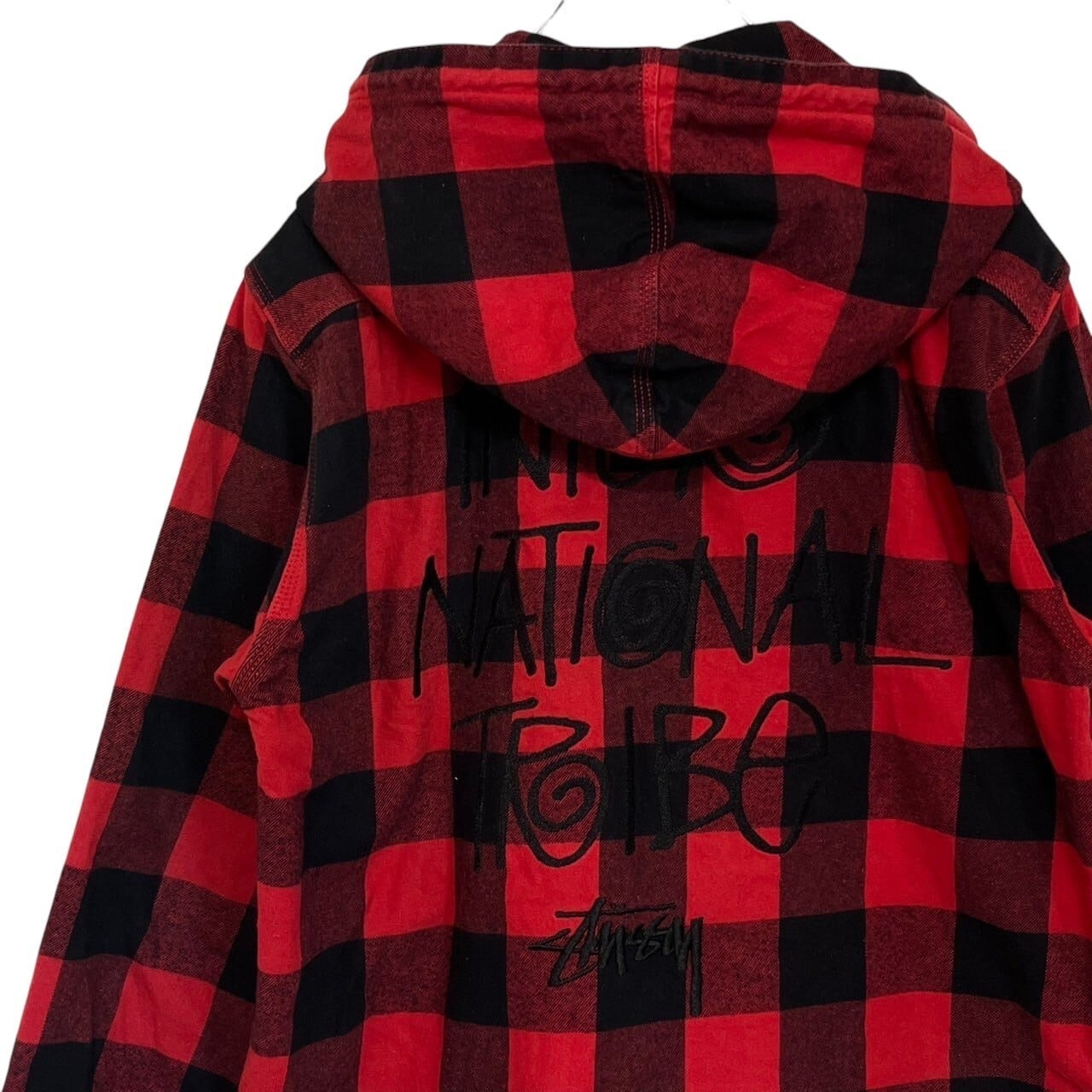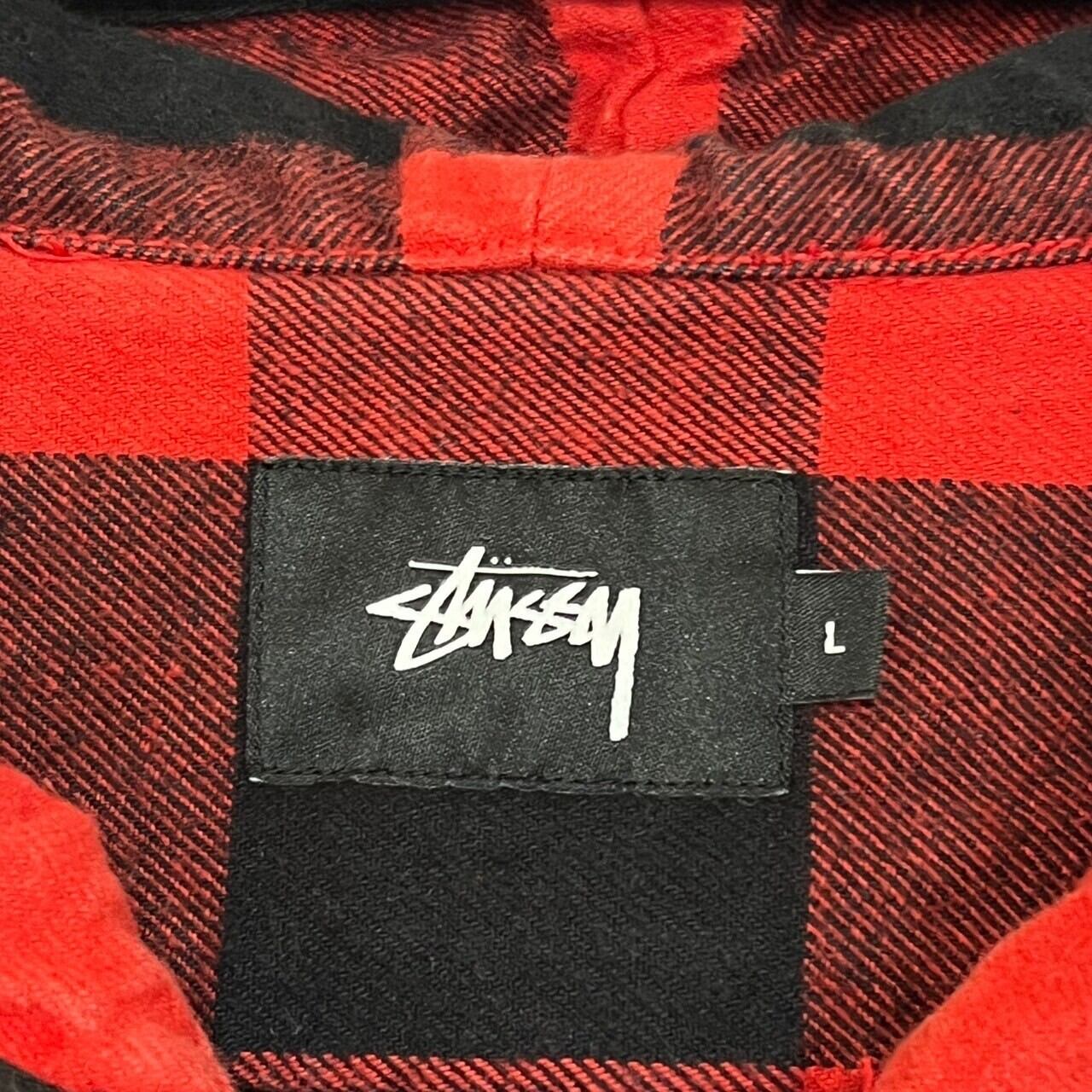 stussy ステューシー ジップパーカー L チェック バックロゴ 刺繍ロゴ ワンポイントロゴ